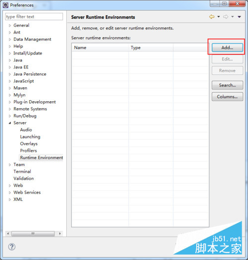 5.配置关联TOMCATA。单击【Window】---【preferences】---【Server】---【Runtime Environment】