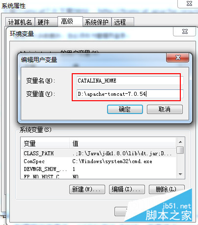1、新建用户变量名:CATALINA_BASE,变量值:D:apache-tomcat-7.0.54
