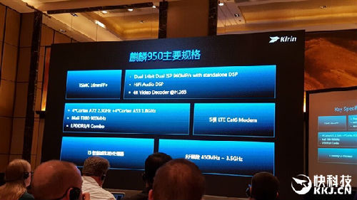 麒麟950还首次商用自主研发的ISP(图形信号处理器),支持14bit双ISP,吞吐率性能提升4倍,高达960MPixel/s,支持混合对焦技术,可以根据拍照场景自适应选择最佳的对焦方式。支持在线双1300万像素传感器,最大可以支持3200万像素传感器。