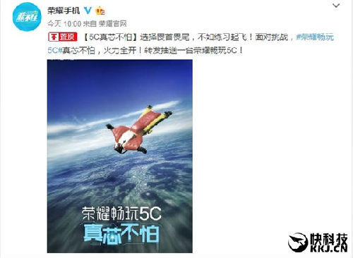从此次的配图“翼装飞行”和上次的“怕手机慢如蜗牛”来看,新机的关键词是快。