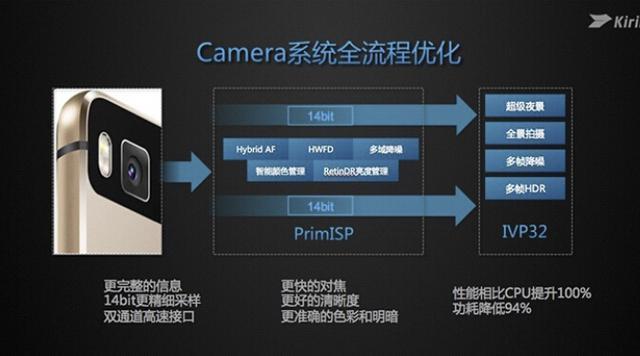 影像方面,麒麟950首次商用自研ISP技术,可以支持14bit双ISP,高达960MPixel/s,吞吐率性能也较前代提升了4倍。除了支持传统的反差对焦之外,麒麟950还可以根据拍照的场景自适应选择最佳的对焦方式,实现混合对焦。另外,支持在线双13MPixel Sensor,最大可支持32MPixel Sensor,也对采集更丰富的图像信息提供了可能。