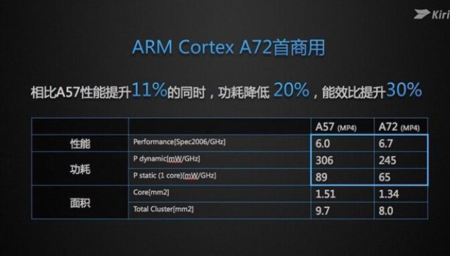 麒麟950还集成了4个Cortex-A72(2.3GHz)核心以及4个Cortex-A53(1.8GHz)核心,A72相比上一代A57不仅在性能方面有所提升外,还在能耗方面降低20%。根据ARM提供的数据来看,A72核心在16nm FF工艺下,2.5GHz频率运行时功耗只有750mW。性能方面ARM Cortex A72核心相比A57提升11%,而功耗则降低了20%,能效比综合提升30%。