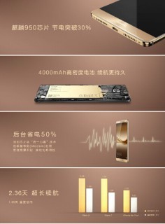 据官方宣称,麒麟950芯片让手机节电突破30%,硬件上更有4000mAh高密度电池,超长续航可让手机正常使用2.36天、连续看高清视频达17小时。而这样的电量只需充30分钟,就能维持1天的使用。传说中的“充电半小时,通话一整天?”
