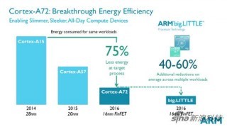 值得一提的是,麒麟950内建的Cortex-A72是ARM今年年初刚刚发布的高性能核心,是之前Cortex-A57的升级版。对比28nm工艺的A15,A72可以做到大约3.5倍的性能提升,同等负载下的功耗则降低75%。