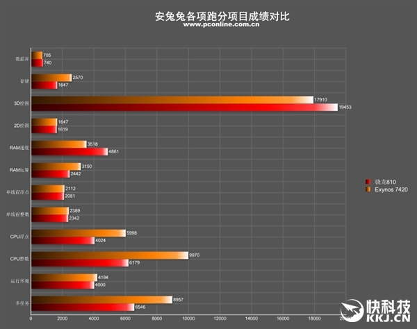 太平洋电脑网测试的骁龙810和7420机型的安兔兔成绩