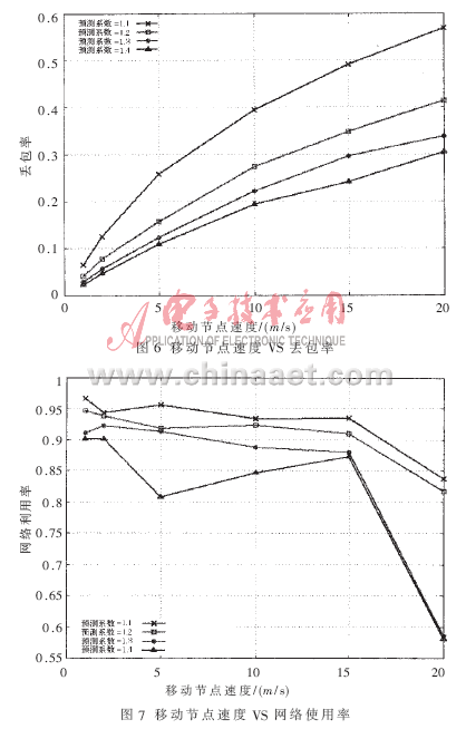 。显然,相同速度下α越大,提前触发的时间就越早,丢包率就越低。图7为移动节点在不同速度下的网络使用概率,本文指IEEE 802.11网络的使用概率。本文定义网络使用率如下:网络使用率=