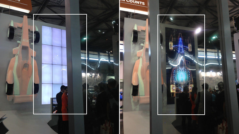 看不见的事情:上面这两张照片拍摄于TE Connectivity在CES的展台,在同一个位置用不同的角度拍摄了一个装置。