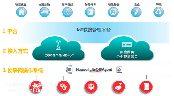 面向物联网,华为提出“1+2+1”的解决方案战略。1个开源物联网操作系统Huawei LiteOS;2种连接方式,包括有线连接(家庭网关、工业网关)和无线连接(2G/3G/4G/NB-IoT);1个物联网平台IoT联接管理平台。OceanConnect是华为物联网战略的重要组成部分。