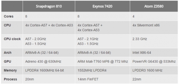 参与性能测试的三款手机分别是索尼Xperia Z5 Compact(骁龙810)、三星Galaxy Note 5(Exynos 7420)和华硕Zenfone 2(凌动Z3580)。由于跑分软件并不能真正代表处理器在实际使用中的表现,因此性能测试还需模拟真实世界的使用,比如运行手机并监控其运行性能。