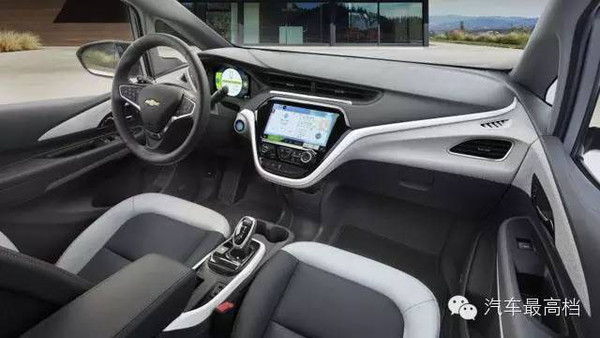 内饰部分,新车体现出新能源车的特点,中控台的设计简约而科技感突出,拥有大尺寸的多媒体显示屏。另外还有液晶仪表盘和电子档把。诸多的科技配置是一大看点,它拥有通用的安吉星4G LTE技术,能够将这款车变为Wi-Fi热点。通过雪佛兰最新的MyChevrolet App,车主可以了解车辆充电的详情、远程启动、空调设置以及经销商信息。这款纯电动车的续航里程为322公里,利用240V的电压9小时可以充满电。