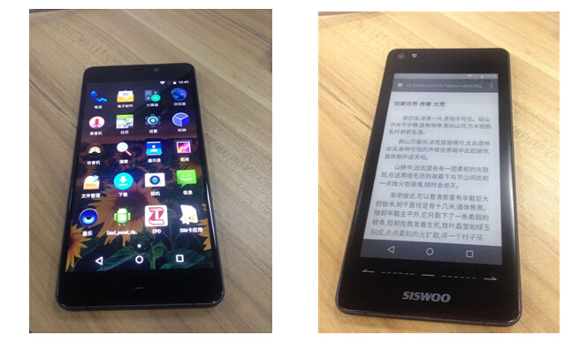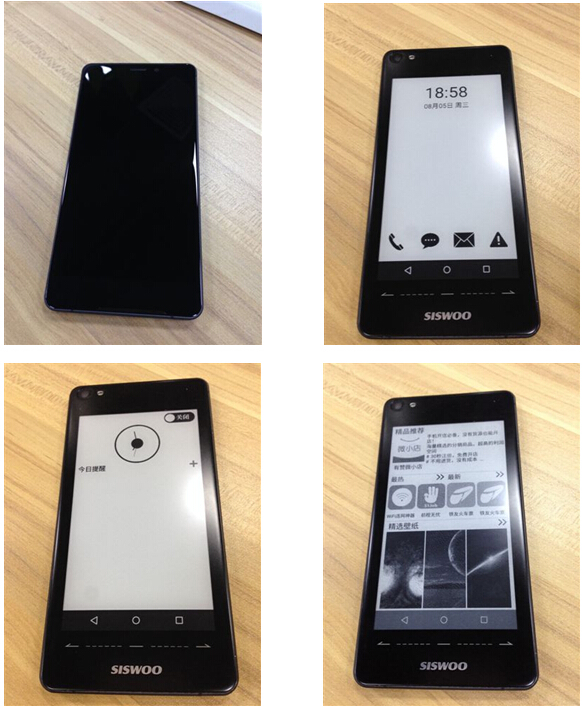 其中,双屏电子书手机与其他手机最大的不同就是是背面的电子墨水屏。而电子墨水屏的最大特性则是耗电量低。首先,图文刷新以后,只有在翻页刷新的时候才耗电,所以电池寿命会很长。其次,阅读的时候电池电量耗尽甚至电池可以取掉,在不翻页的情况下不会耗电,已显示的图文会长期停留在屏幕上。最后,当智能手机大部分处于锁屏状态时,查看时间或信息是必须解锁手机的,这样十分耗电。而电子墨水屏则可以长期显示,屏幕内容不改变时将不耗费电量。此外用户可以选择SISWOO为墨水屏特殊定制的界面,,比如用背面电子墨水屏进行发短信、打电话、电纸书游戏、阅读电子书等操作,这将手机使用时间增加到正常5倍。(下图为SISWOO双屏手机在关机状态,在无供电状态下,背后的电子墨水屏仍显示最后掉点前一页。)