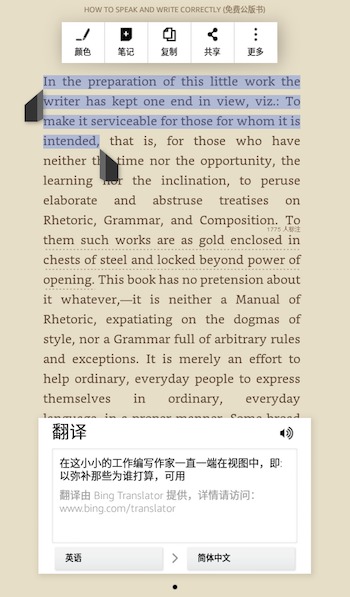 Kindle Fire甚至可以做到整句翻译,具体实现方法来自于微软的Bing搜索引擎。不过,在实际体验中,我们也感受到了翻译质量的不足,更多的翻译结果还要细细体会才能理解。