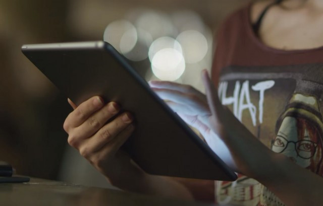 从广告片中可以看到,一个人正拿着一款平板电脑操作,该设备与N1的外观类似,但尺寸要更大,四周经过圆润处理,电源键位于机身顶部右侧。