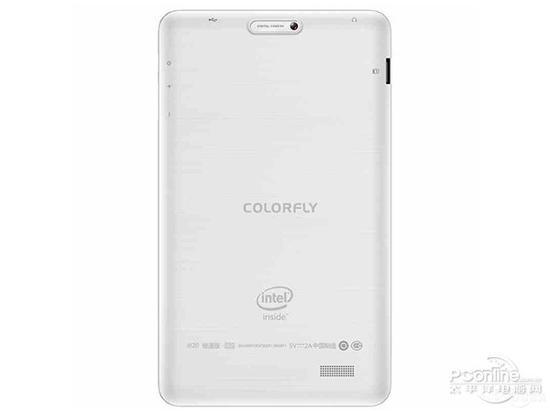 七彩虹i820 极速版的后壳设计得十分简约,采用了细蚀纹塑料材质,有一种皮肤质感,可有效防指纹。四边角采用留缝设计,也可以起到防滑效果。后壳顶部正中为一颗200 万像素摄像头,成像质量中规中矩,放置于一个椭圆保护边框,正中为产品Logo,底部为产品说明,右下角是一个发音单元,音质十分洪亮。后壳边缘与侧边框 有圆角过度,持握手感不错。