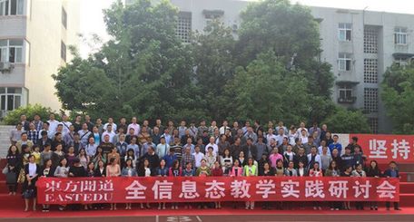 上午8:30,彭州一中校园里已热闹非凡,来自四面八方的各学校老师络绎不绝地走进校园里。与会的百余名老师当中,不仅包括成都地区、四川各地级市的学校老师,还有四川以外的省市和少数民族地区教师,他们汇聚彭州一中,享受一场网络教学交流的大盛宴。会议在9:00准时开始,韩局长首先致辞,诚挚欢迎各校老师的到来,并介绍了当前彭州市全信息态教学的相关情况。东方闻道网校总设计师刘林致开幕词后,全体与会人员来到操场合影留念,将此次重要活动记录下来。