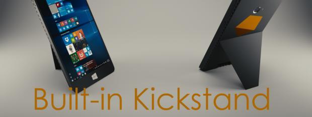 联想的YOGA平板就是主打自带支架创意设计的,其设计有非常拉风的支架,从而支持4种使用模式:触控模式、站立模式、阅读模式和悬挂模式。