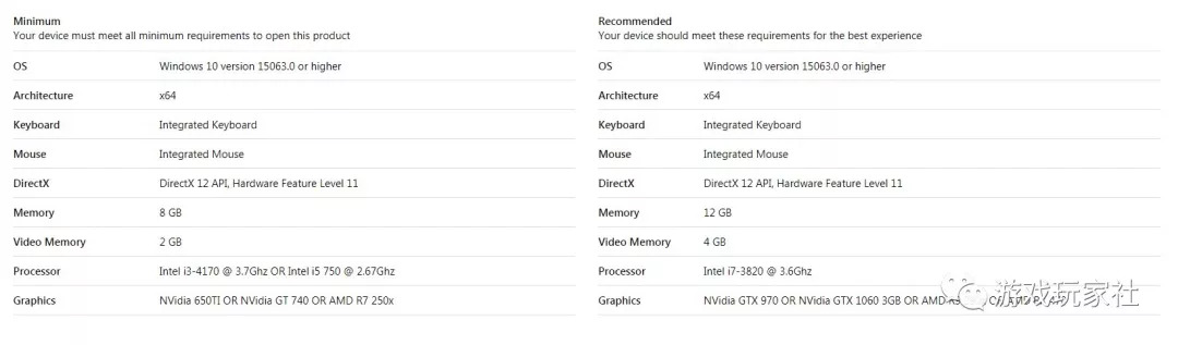 从配置信息来看,系统要求为win10系统,最低配置处理器至少需要i3-4170或者i5 750,内存至少需要8GB,显卡的话,N卡至少需要NVidia 650TI,A卡则至少需要AMD R7 250x。
