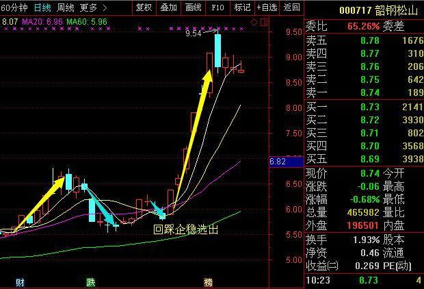 韶钢松山本人24号在我微信号(gpam888)QQ:1578217367用一分钟选股法选出:可以看到该股是非常典型的一分钟选股法选出的,股价经过一波拉升后。股价开始回踩,而资金却还是在大幅流入。所以股价企稳之后果断选出,可以看到截止目前短短11个交易周期。涨幅高达46个点!当时看到本人专栏文章的粉丝朋友都把握到了这波收益,如果你没有把握到,也不要着急。