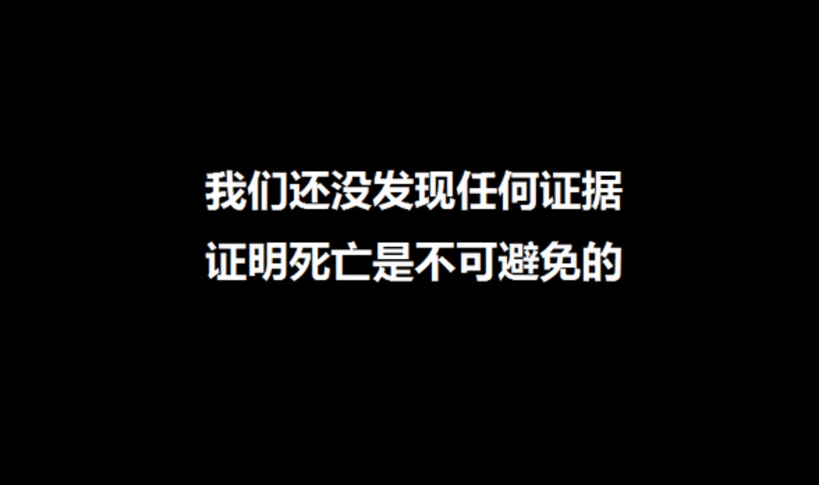 但是在生物领域我们还没发现任何证据证明死亡是不可避免的。也就是说死亡不一定是不可避免的,生物学家早晚会发现造成我们死亡的原因是什么,而死亡这个糟糕的‘病’就会被治好,而人类的身体也将不再只是个暂时的容器。”