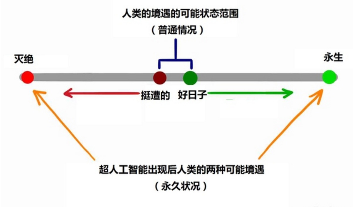我们可以给予未来所有人类以生命,甚至是永生,我们也可能终结人类这个特殊的物种,连同我们所有的音乐、艺术、好奇、欢笑、无尽的发现和发明,一起走向灭绝。
