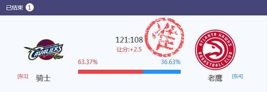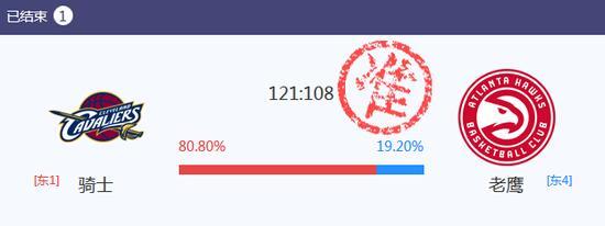 北京时间5月7日,骑士后来居上,客场以121-108击败老鹰,从而以3-0取得系列赛的赛点。本场比赛,新浪彩票人工智能小炮对于骑士的预测完全正确,而且在推荐中出概率上,是绝对的压倒性优势。