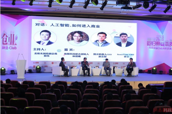1月17日,由网易科技主办的“网易创业Club周年庆典”在北京举行。在大会现场,北极光创投副总裁蔡伟、依图科技联合创始人林晨曦、图灵机器人CEO俞志晨、SenseTime CEO徐立围绕“人工智能如何进入商业世界”展开了一系列对话。