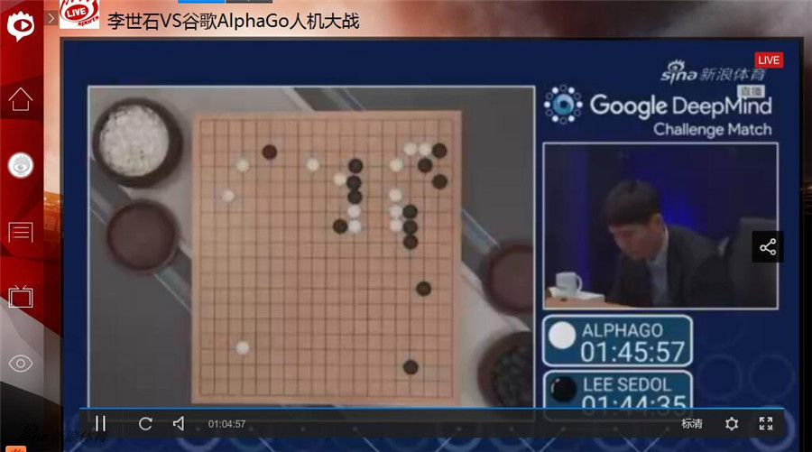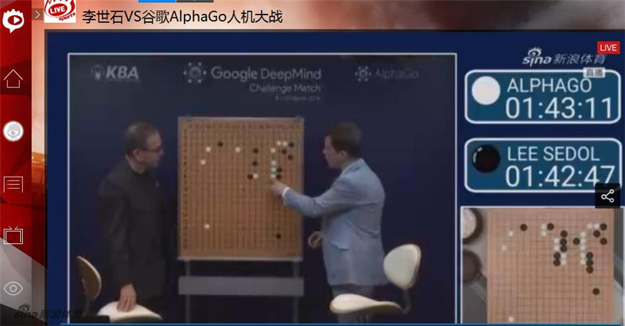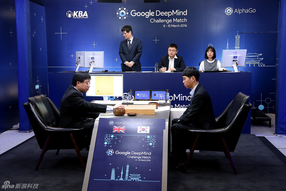 3月9日,韩国世界冠军李世石九段与谷歌AlphaGo对抗赛首局在韩国的四季酒店打响。目前已经激战了一个小时,执白的AlphaGo稍占优势。