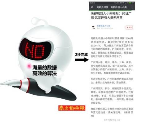 北京大学计算机科学技术研究所近日研发写稿机器人“ 小南” , 通过海量数据积累与训练,可在两秒内撰写 300字左右的中文稿件。目前该写稿机器人已在《南方都市报》上线,聚焦民生领域报道, 通过采集、分析数据, 遣词造句,