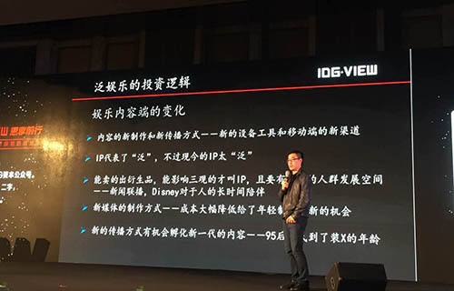大会上,IDG发布了2016年三大投资方向:人工智能、消费升级、泛娱乐。