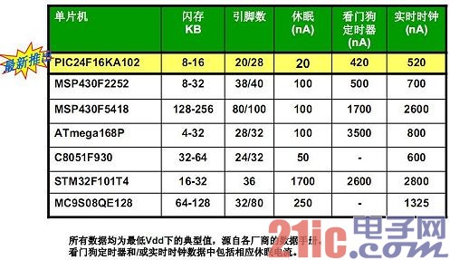微芯最新发布的低功耗产品与同类竞争产品的数据比较