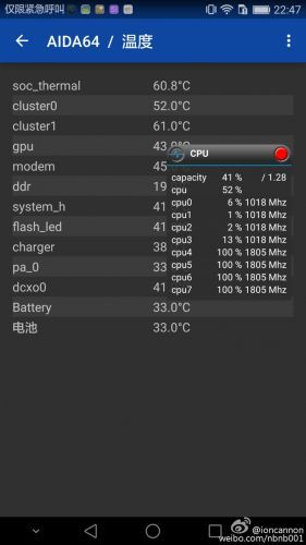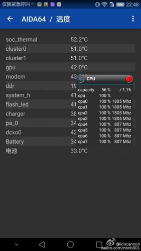 真的如此吗?微博网友@ioncannon就对麒麟950做了一番拷机测试,发现确实还是比较令人满意的。