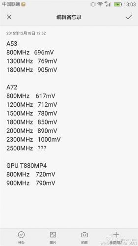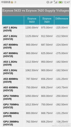 另外,麒麟950 A72核心的最大电压只有1000mV,A53核心905mV,很出色,而相比之下,三星14nm Exynos 7420里的A57、A53核心最高分别为975mV、950mV。