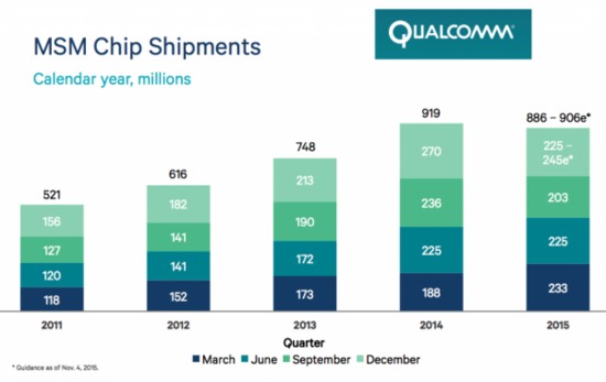 高通依然是移动芯片市场的大哥,市面上绝大多数智能手机都采用了高通的处理器。根据上季度的数据显示,在所有 Android 智能手机中,高通以 30.62% 的市场占有率占据排行榜第一位,联发科以 29.35%的占有率位居第二位,三星则以 15.84% 的市场占有率处于第三位。那么市场份额不少,Snapdragon 810 杀伤力有那么大吗?具体损失的问题,我们看高通财报。