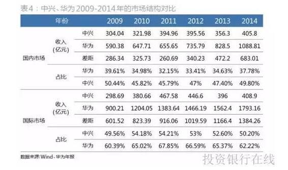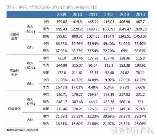 由于华为未有披露各明细业务的毛利率,无法与中兴进行分类比较。但基本可以判断,应该是各自业务比重最大的运营商业务的毛利率差距,决定了整体毛利率的差距。