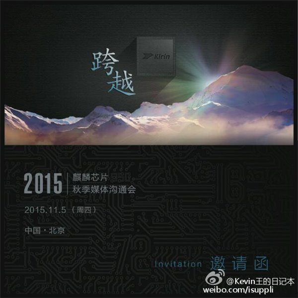 近日已爆出华为发布的邀请函,华为海思将于下周在北京召开发布会,计划中的麒麟950处理器将会横空出世,首款采用A72内核的处理器,最先进的台积电16nm finfet工艺,将会搭载在旗舰手机华为Mate 8上。