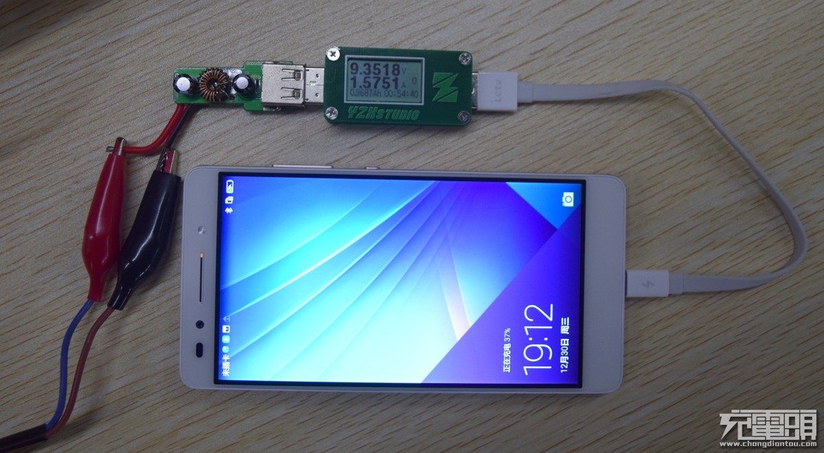 从图片上可见,这款车充的集成度非常高,仅需一个电感、两颗电容,以及背面的uP9613主控等元器件组成,体积非常小巧。值得一提的是,华为这款车充不但支持自家的FCP快充,同时还拿到了高通授权,兼容QC2.0规范,可以给三星、HTC、SONY、小米等手机搭配实现快充。并支持BC1.2规范,意味着苹果设备也能全速充电。通过下面的简单体验,这款尚未发布的车充性能非常彪悍,并且还带了玩家津津乐道的电压补偿技术。