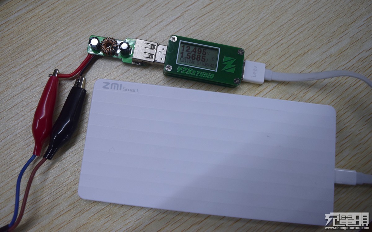 其次,给紫米HB810移动电源充电测试:12.49V 1.56A (19.48W),这款支持QC2.0输入的移动电源与华为车充成功握手,并且实现全速充电,还超过了大多数快充的9V 2A (18W)规格。充电时间方面,2小时30分钟可以将这款移动电源充到85%电量,全部充满10000mAh需要3小时40分钟。