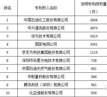 从排名中可以看出,无论是专利授权量合适申请量,排第一位的都是中石油或国家电网这类传统国企。而紧随其后的是手机通信行业,在专利授权量排名上,中兴排第二,华为紧随其后排第三。
