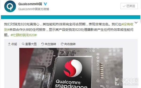 小米5用户放心了!美国高通力挺:骁龙820不会发热严重