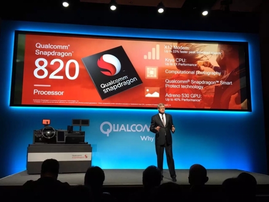高通首席执行官史蒂夫莫伦科夫在CES发布会上介绍骁龙820芯片