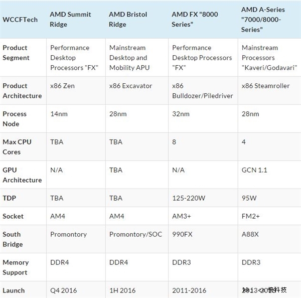 今年的Zen架构处理器代号Summit Ridge,首发款归属高端FX序列,统一AM4新接口,支持DDR4内存,同频性能比挖掘机提升40%。