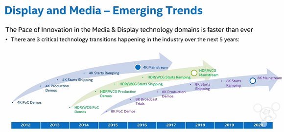 英特尔还提供了一张显示屏和媒体发展的趋势图: