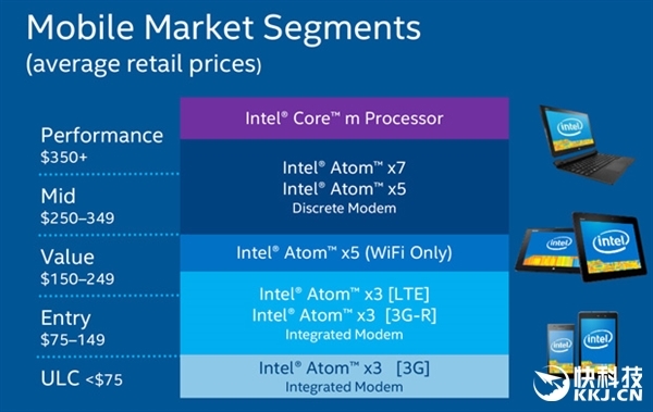 作为传统芯片巨头,Intel就一直在努力跻身移动市场,手机方面没啥指望,更多的精力还是放在了平板机上,2014年就出货了4000多万颗处理器(虽然很多是靠补贴拉动的),产品更新换代也是非常及时。