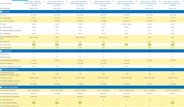 相比于上代Atom Z3000系列多达16款型号、规格稍有变动就是一款新品的做法,这一代清晰明了了很多。