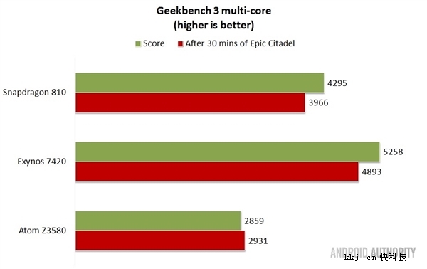 业内知道,英特尔当初进入移动市场最大的卖点就是性能,但由于ARM及其阵营在技术上,尤其是以苹果为代表的自研芯片的飞速发展,英特尔当初的性能卖点在今天已经被大大稀释,这点从科技网站Android Authority近日对三星、高通和英特尔三家厂商主流的SoC(高通的骁龙810、三星的Exynos 7420、英特尔的凌动Z3580)芯片的对比测试中,英特尔芯片在主要的性能、续航、实际使用项等方面均垫底可见一斑。