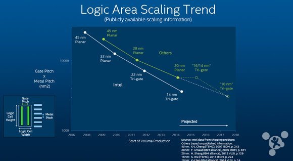 所以,三星和台积电所说的都是事实,这两大越来越出色的芯片代工厂在20纳米制程时代确是领先于英特尔22纳米。但不可否认英特尔新一代14纳米更为出色,至少晶体管密度的优势上超过了其他对手的14/16纳米工艺节点。