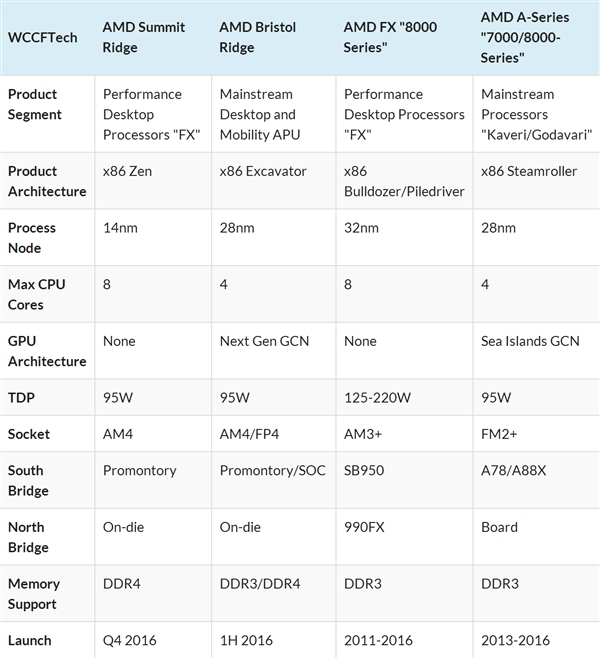它其实就是现有Carrizo的升级版本,仍然是GlobalFoundries 28nm工艺、挖掘机架构CPU、最多512个流处理器,但是频率和性能会有明显提升,同时开放支持DDR4内存,更关键的是接口变化,其中移动平台变为FP4(整合封装),桌面则是AM4,和未来的Zen架构新家族Summit Ridge完全相同、彼此通用。