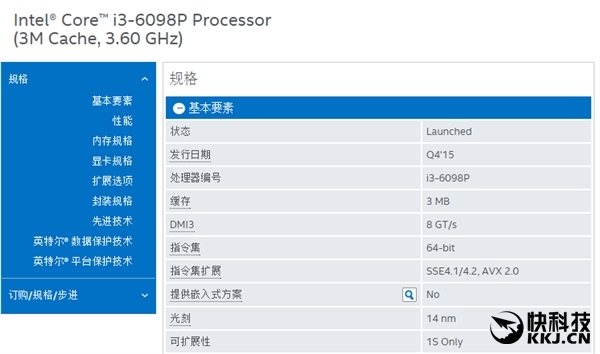 目前在Intel的ARK数据库中已经出现了Core i5-6402P及Core i3-6098P两款新处理器,发布时间写的是去年四季度,但之前没有任何报道。