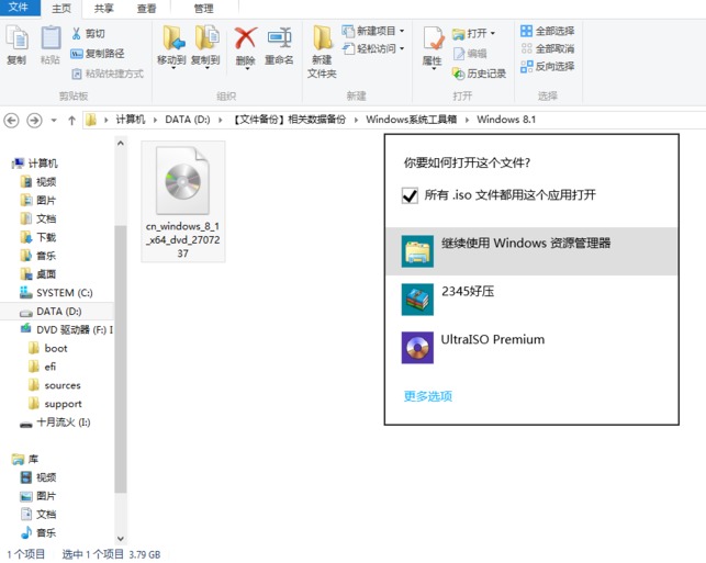 2.右键选择下载好的ISO镜像文件,打开方式选择使用Windows资源管理器打开ISO镜像,系统会自动加载镜像文件
