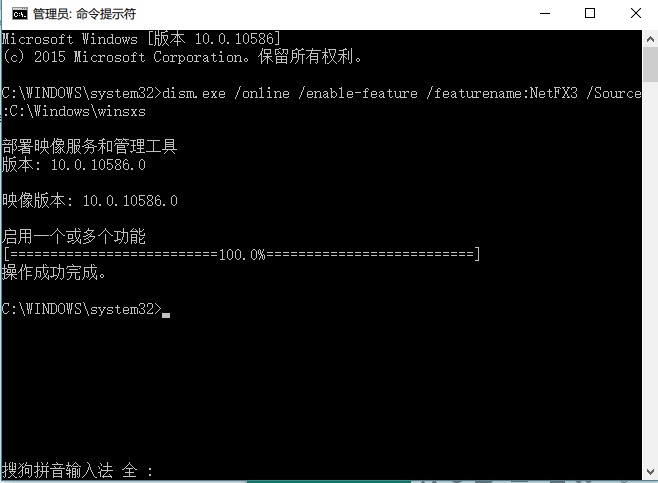 3.在打开的命令提示符里黏贴 dism.exe /online /enable-feature /featurename:NetFX3 /Source:C:Windowswinsxs 按下回车